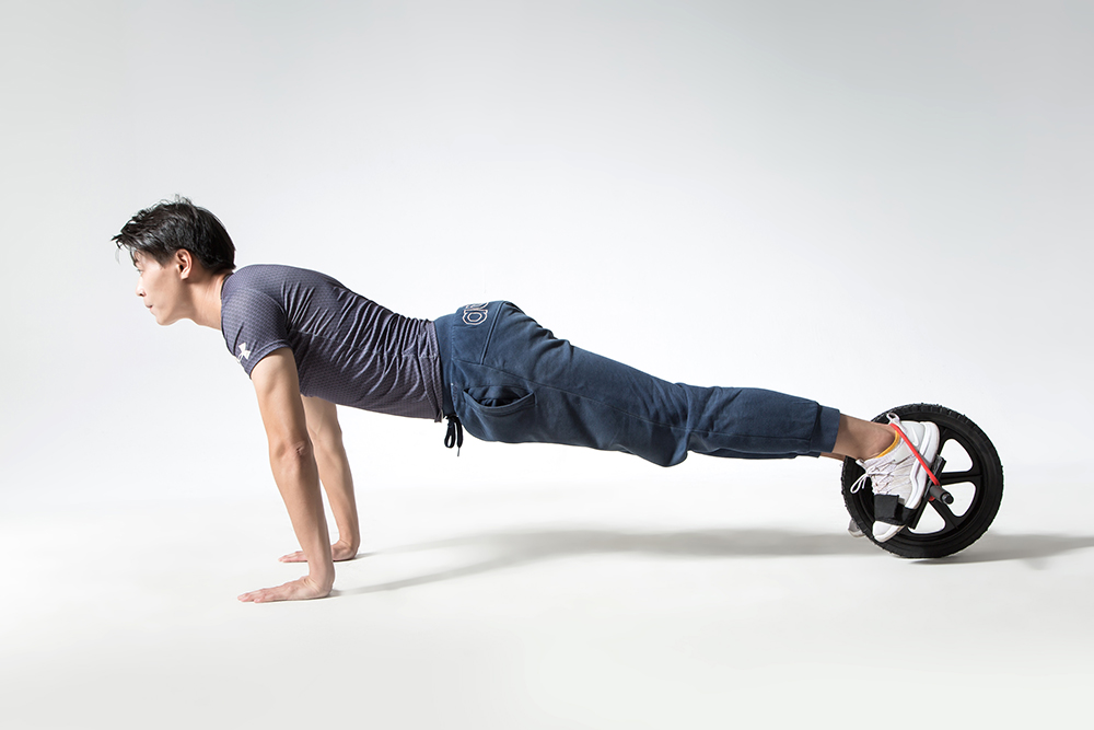 幅3.5cmのワイドホイールが抜群の安定感を生み出し、初心者でもぶれずにトレーニングできます。さらに、腕立て伏せ・レッグカール・ローリング運動など、1台で複数のトレーニングが可能。