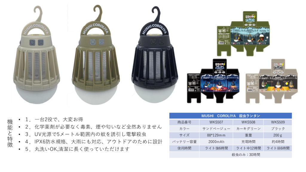 アウトドアや室内、どこでも使える電撃殺虫LEDランタン。